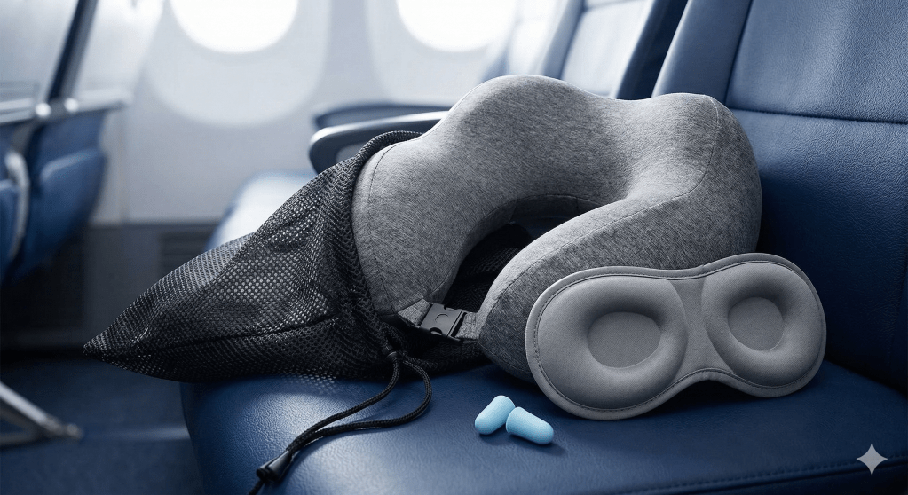 Long haul comfort for the journey ✈️ A 360° head support neck pillow with a 3D contoured eye mask, earplugs, and a luxury mesh bag included. Kenya is a long flight. Morocco is a long flight. Arrive rested and ready — not stiff and squinting. Shop the Proglobe Travel Neck Pillow Set →