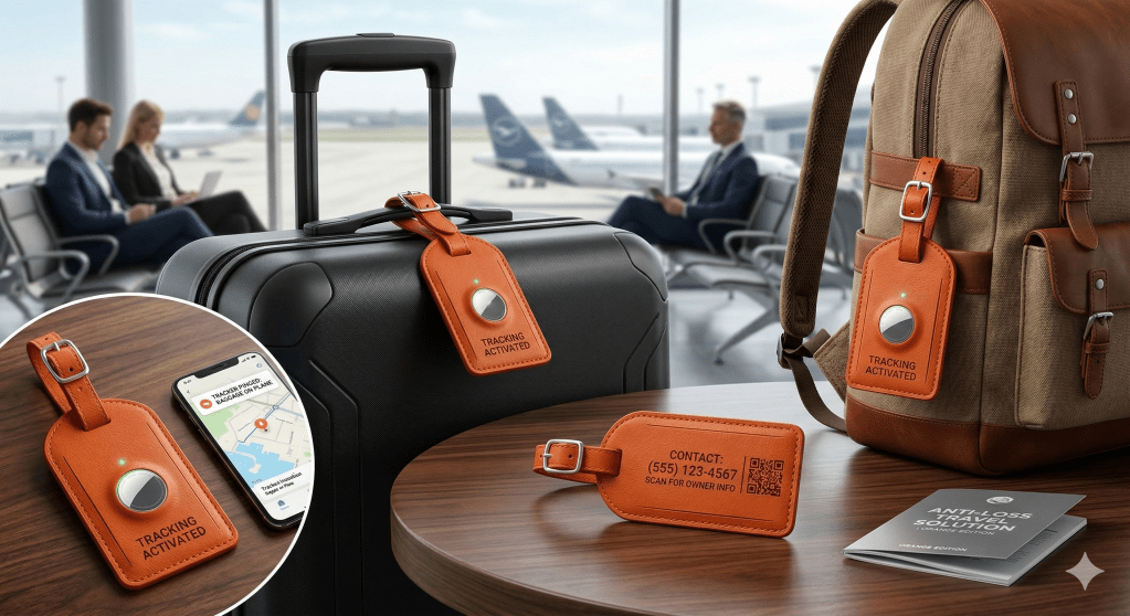 Never lose your luggage again Luxury leather luggage tags with a built-in anti-loss tracker. Because your bags deserve to arrive in Morocco just as much as you do — and this rose gold set is too gorgeous to lose at baggage claim. Shop the Leather Anti-Loss Luggage Tags →